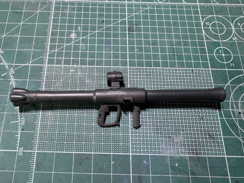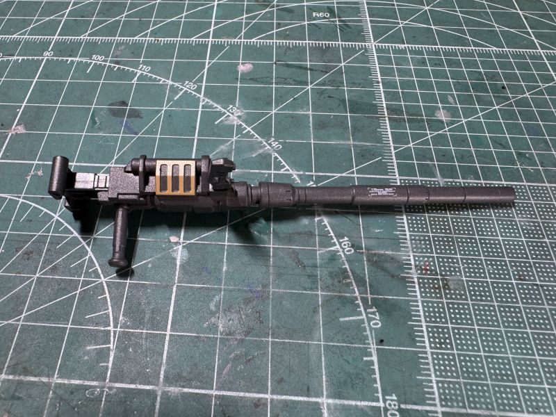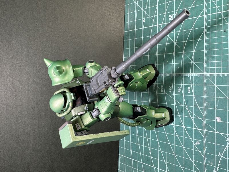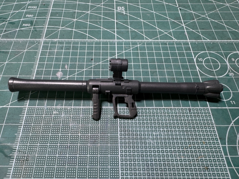 ジオン公国軍の大型戦車「マゼラ・アタック」の砲身を携行兵器として改造したものです。マゼラ・アタックは現行の戦車と比較しても超大型戦車なので、砲身をザクが持ってもこのサイズになります。175mm無反動砲という設定ですが、縮尺的にはどう考えても大きすぎる気がします。この辺は昔のアニメなので大目に見ましょうよ。これも武器としてセットに入ってることがうれしいではないですか。