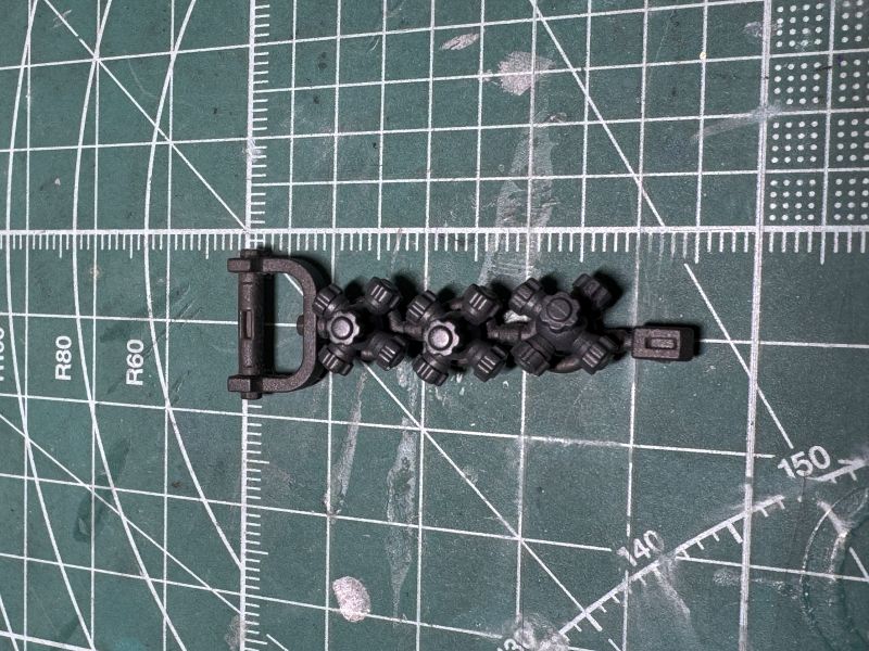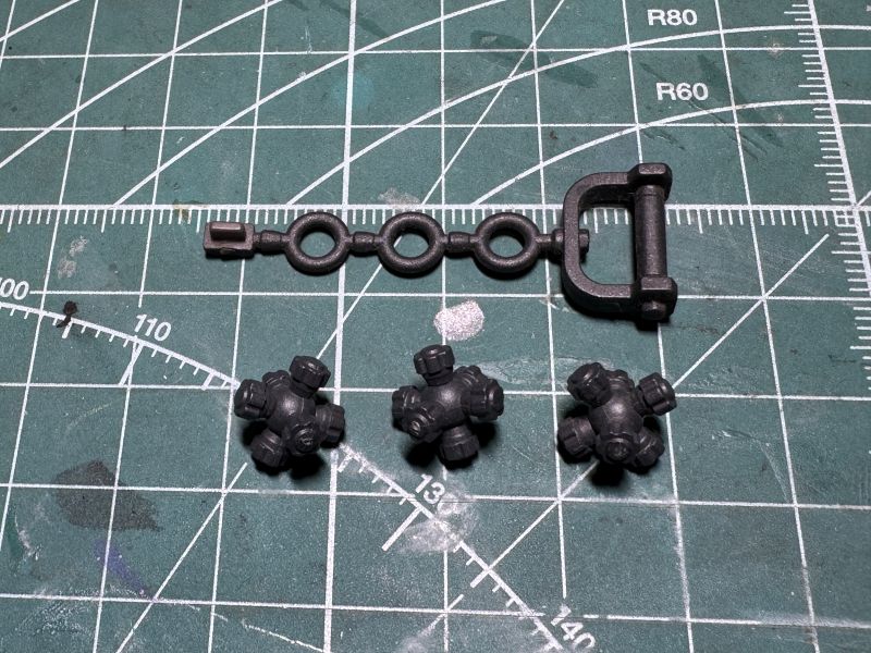 ザクⅡJ型が使用する手榴弾。これも付属してくれてます。人間が使う手榴弾と違って、6つの突起が飛び出たトゲトゲなデザイン。SHCM-Proではクラッカーは3つ付属しており、そしてこれを収める専用のキャリーがあります。突起の一つをキャリーのリングに通して固定することができます。キャリーは手に持たせるか、腰部ハードポイントに付けられます。