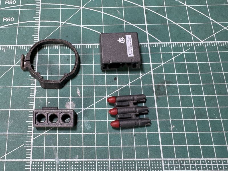 SHCM-Proでは装着バンドが軟質樹脂となっておりこれで足に固定できます。この軟質樹脂パーツは劣化によって少しべた付くので埃が付きやすくなりますのでご注意。ミサイル・ポッドは分解することができ、内部のミサイルもしっかり造形されています。バラして飾ろうとする人はかなり少数派だと思いますが、こんなところまで造りこむとは。恐れ入ります。