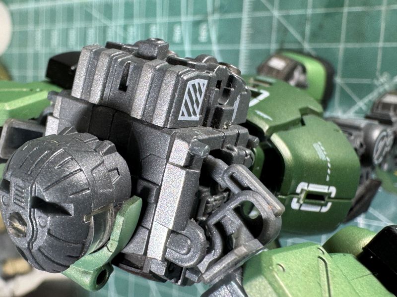 脛に装着した3連装のミサイル・ポッドです。火力増強のための装備ですね。MSイグルーではセモベンテ隊の陸戦型ザクがヒルドルブを追い立てるために使用してたのを僕は見ました。