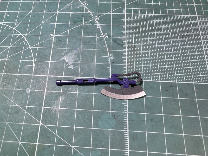 ヒート・ホーク自体はコンパクトで片手で扱う武器なのでポージングはとても楽です。ちょっと構えるだけでばっちり決められます。高熱を発生させ ている状態を表現するクリアパーツも付属しています。そう見えなくもない、かな。でもあると嬉しいオプションパーツです(写真右)。