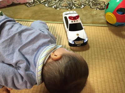 そして、ちょっと感動したのが息子の姿勢。床に頭をつけて寝そべりながらブンドドに興じる。妻がこれを見た時に眠いのかと思ったそうだ。とんでもない。これこそ、まさにブンドドの基本的な姿勢なのだ。実際今でもこれをやっている立場の僕から言わせてもらうと、これは実機に近いアングルから眺めることによって、自分の中での臨場感を高めているのである。そして、その模型の最も映えるアングルを探してその工業製品の機能美を堪能しているのだ。模型は通常、大型の工業製品(架空機も含む)を縮小した立体物なので、当然低い視点から見た方がリアリティは増す。だからこの寝そべってお尻を突き出しておもちゃで遊ぶというのはごく自然な姿なのだ。僕も小さい頃、ミニカーやら鉄道模型を眺めながらまさに同じ姿勢を取っていたので、息子の姿を見て誰から教わらなくともみんなやるんだと感動したわけだ。