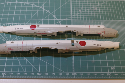 気を取り直して本作業に戻る。翼端灯をそれぞれ遮光ケースに格納する。そして、使用しない航空灯用LEDを遮光シールで覆う作業をおこなった。機種によって点滅する航空灯の使用数が異なり、今回チョイスしたノーマルのP-3Cでは一つ使用しないので光が漏れてしまわないように覆ってしまう、というわけだ。この作業は順調にいった。