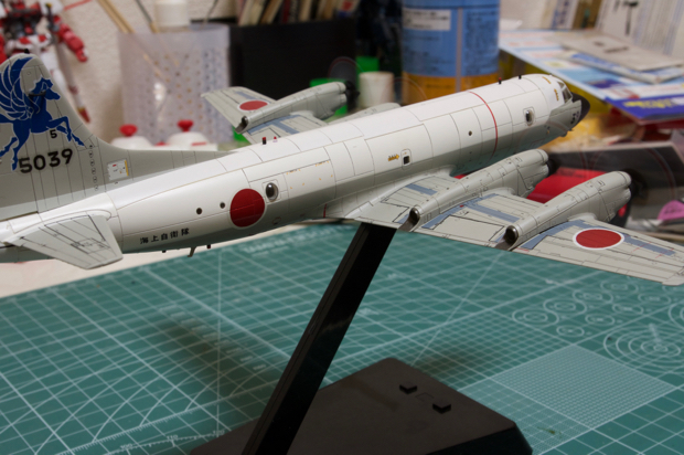 数々の失敗を繰り返しつつも、なんとか完成まで持ってくることができた。プロペラ回転ができる飛行機模型は小さな頃から憧れていたが、それをついに手にすることができたというのはとても感慨深い。第二弾として、同じP-3Cで着陸形態で製作することも既に心に決めたわけだが、実はこのP-3Cを製作する過程で技mixの魅力にとりつかれてしまい、ジェット機系のモデルも幾つか購入している。当初は単独企画として、技mixP?3Cの製作記事を作って終わりにするつもりだったが、技mixシリーズもメインに扱うコンテンツに昇格させようと思う。なかなか気軽に購入出来るシリーズではないし(価格的な意味で)、過去に発売されたモデルを入手できるかどうかは運次第なわけだが、自分が手に取ったものについてはまたご紹介していきたいと思う。