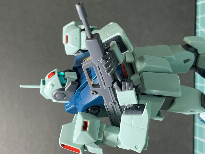 60mmバルカン砲:多くの連邦軍モビルスーツが装備する標準的な基本武装は、ジム系の発展型である本機のヘッドユニットにも採用されており、近接戦闘時に最大限の効果を発揮する。