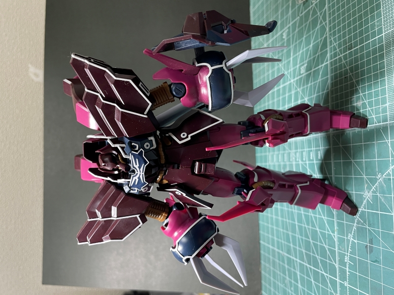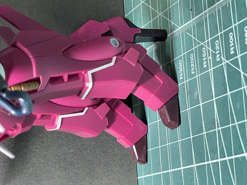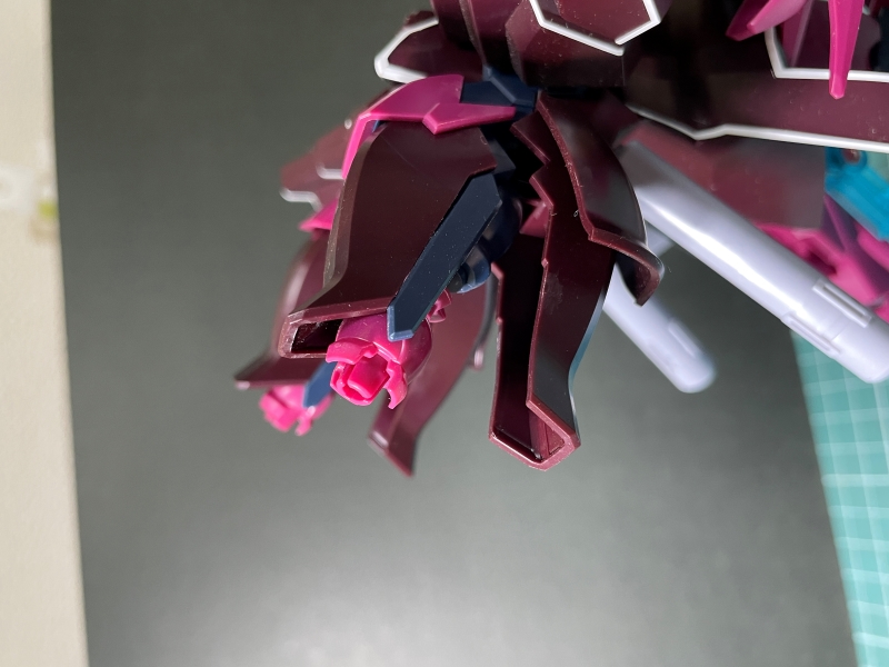 そしてこの中ボス機としては完璧な存在だと思うのは僕だけだろうか。パイロットのアンジェロのキャラクターをそのまま引き写したかのようなグロテスクなデザイン。胴体と足はたしかにギラ・ズールだが、随分なアレンジである。足が細長いのに腕が極太なのでバランスの悪さって言ったらない。いや、いいですね。悪趣味すぎて好きです。このキットで話題になったのが成形色がパッケージや組立説明書の写真と全然ちがうこと。ピンクのほうは設定色に近いですが、紫であるはずのパーツの成形色はどう見てもあずき色。パチ組で終わりにする人ににとってはこれではイメージと離れてしまいます。なぜこうも違った色で製品化されたのかはいまいち分からないのです。ちなみにローゼンズール改修型のEP7バージョンのキットでは成形色がきちんと設定に近いものになっていました。できなかったわけではなさそうだけど、なにかのミスでしょうか。塗装することで設定に近いカラーにすることはできるが、どうしても塗装できない環境の人は、EP7バージョンを購入すれば、そちらの余剰パーツでノーマルタイプにすることもできるらしい。僕はせっかくなんで塗装してみようと思っております。まずはこのあずき色バージョンで作りの確認をしよう。