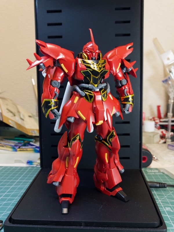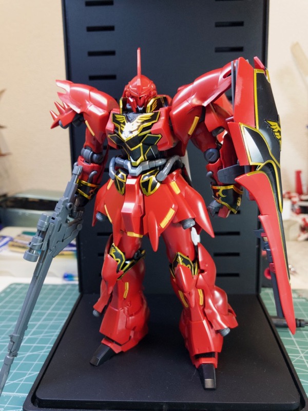 シナンジュはネオ・ジオン側の首魁であるフル・フロンタルが登場する最も高性能機なわけであるから、それなりのビジュアルも要求される。最初に見たときはフェイスがカブト