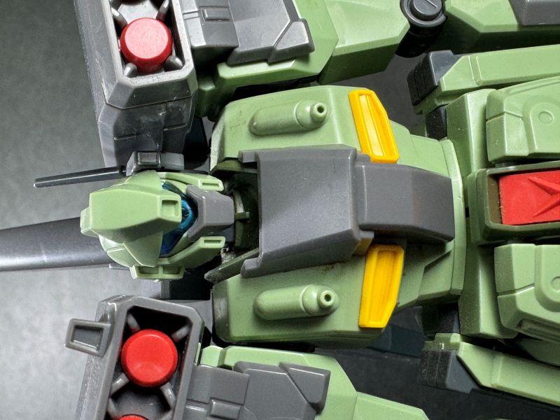 胸部のアップ。ジェガンの一つ目がクリアパーツ越しに見えるのは詳細な塗装方法とかいずれ研究しないとだめですね。これだけでも十分映えますけども。